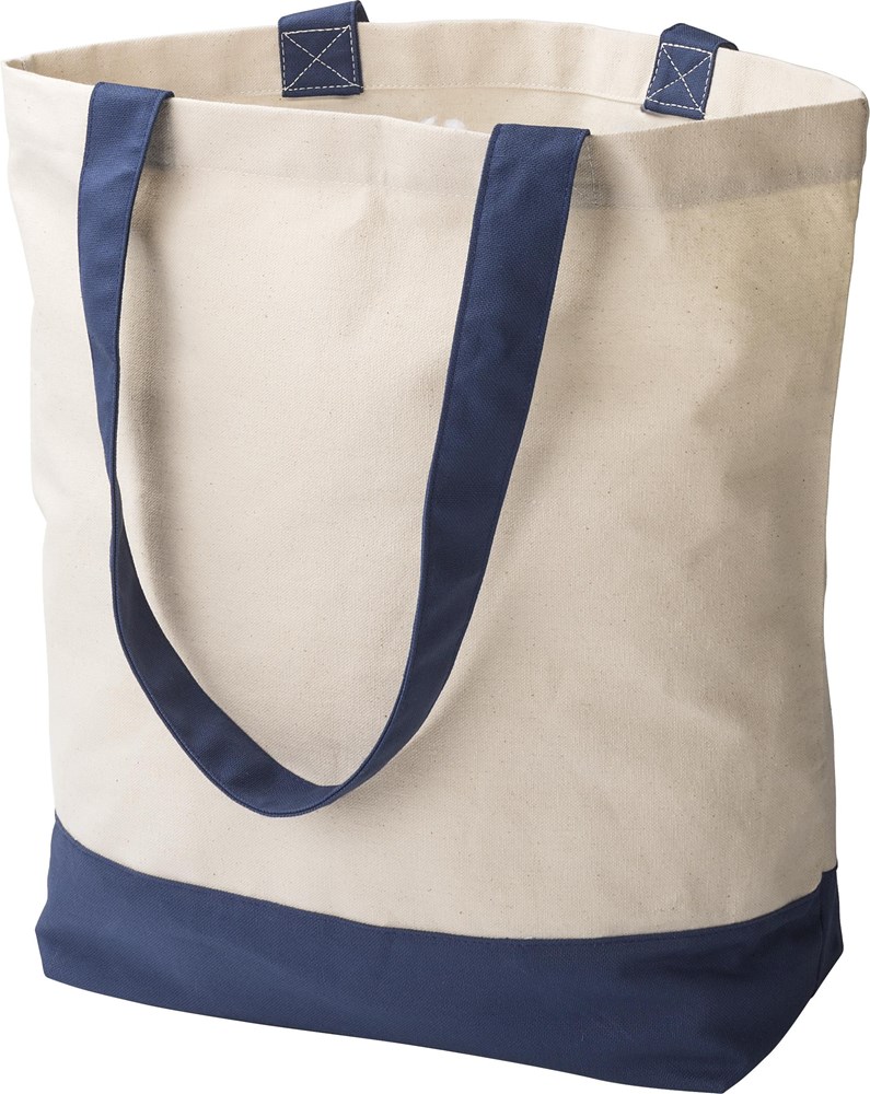Katoenen (280 g/m2) boodschappentas met gekleurde details en bijpassende handvatten. Eén groot compartiment.