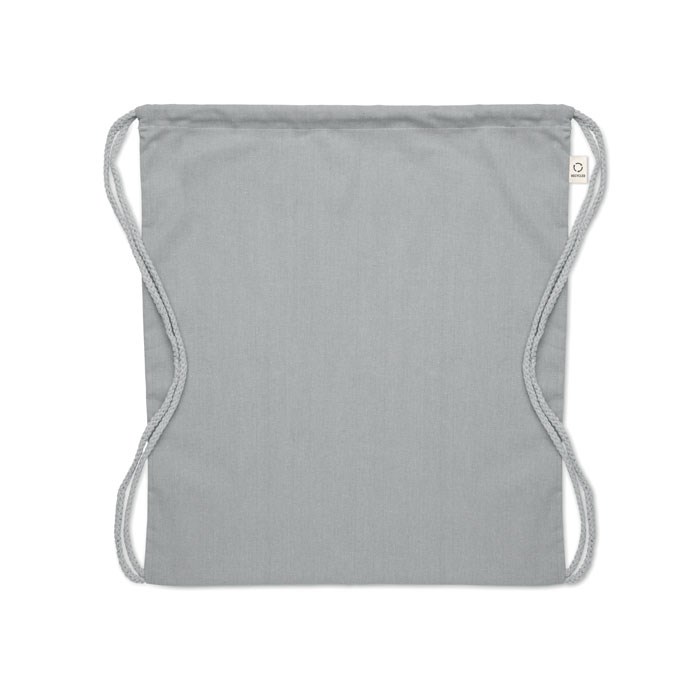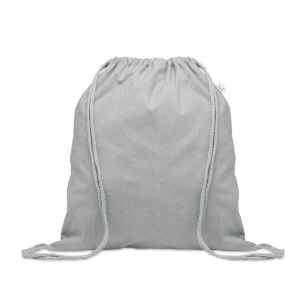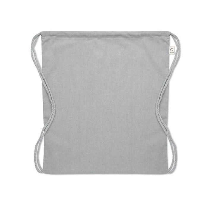Gerecycled trekkoord rugzak van pre-consumer katoen (70% gerecycled katoen en 30% RPET) met lange hengsels. 140 gr/m². Dit artikel kan krimpen na het afdrukken.