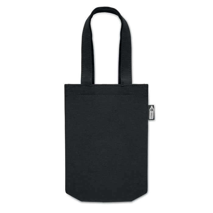 Kleine geschenk- of goodiebag van RPET-vilt met korte hengsels en bodemplaat. Dikte vilt: 1 mm.