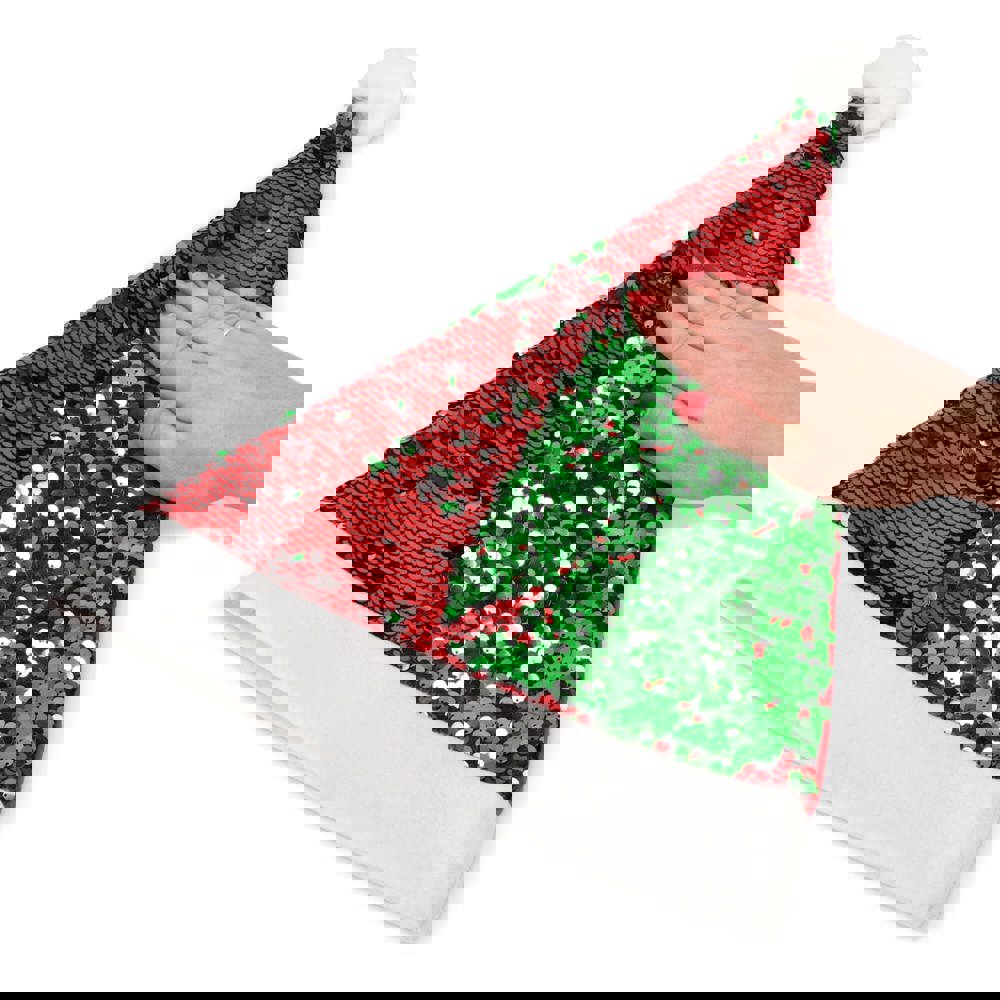 Schitter tijdens de feestdagen met deze opvallende pailletten kerstmuts! Versierd met een volledig paneel van glinsterende, tweekleurige pailletten voor extra schittering, is het de perfecte accessoire om een vleugje glamour aan elke feestelijke outfit te geven. Laat je hand over de pailletten glijden om ze van kleur te zien veranderen voor een extra beetje magie.