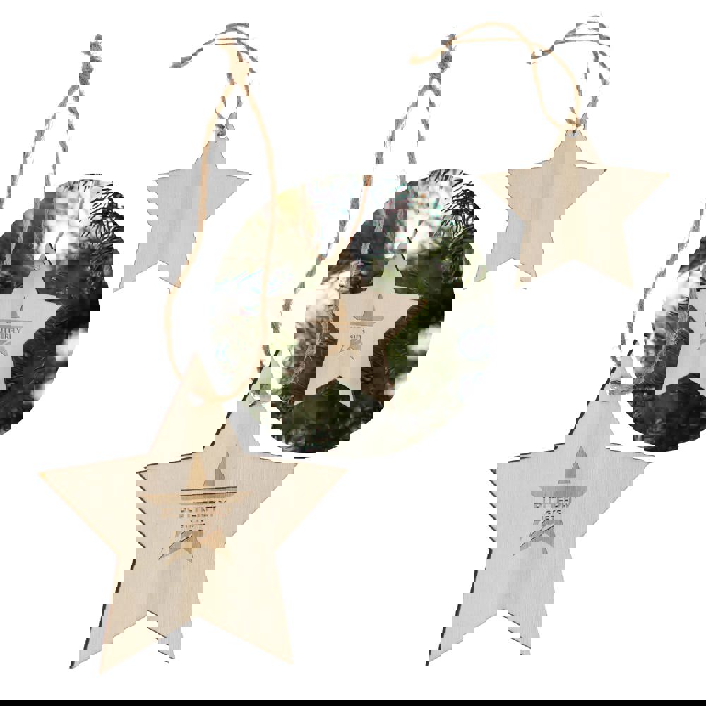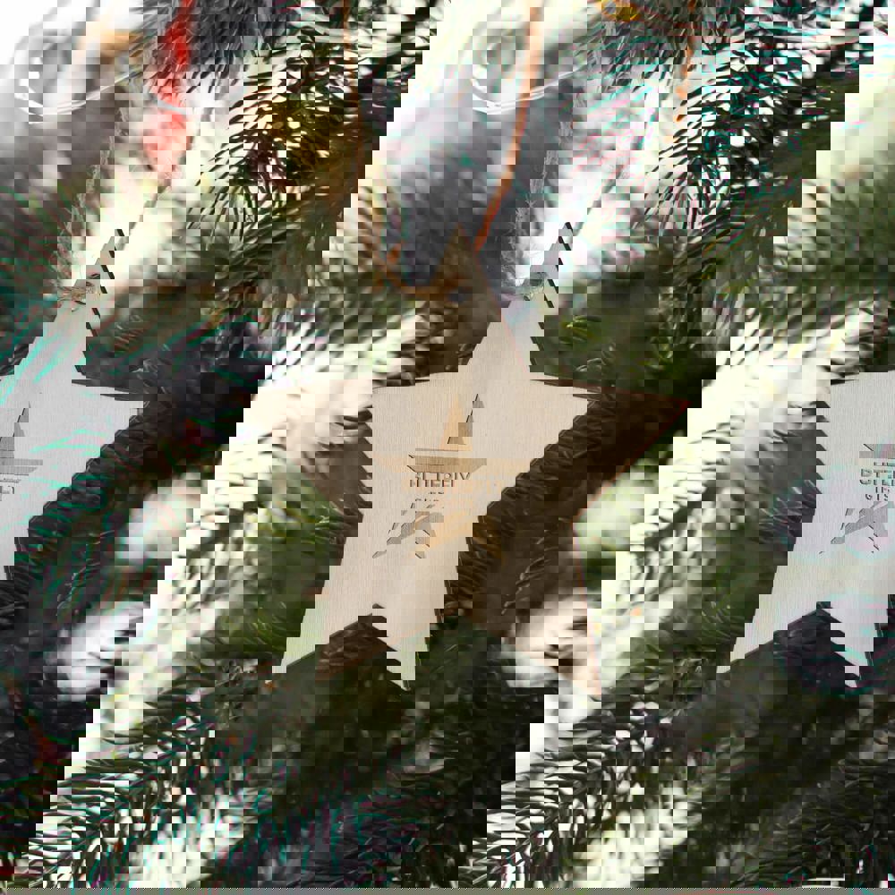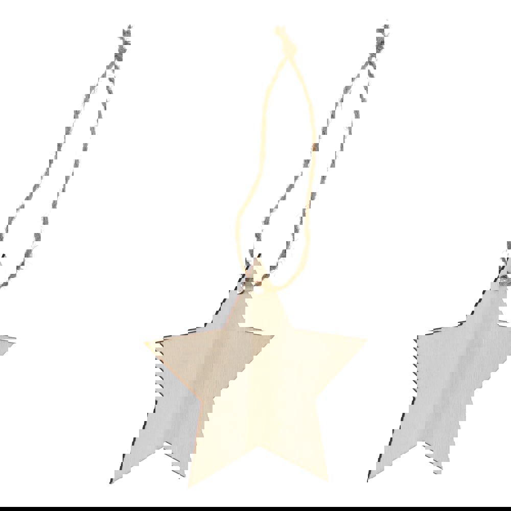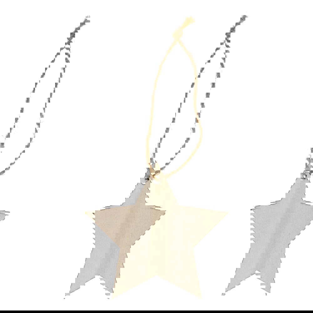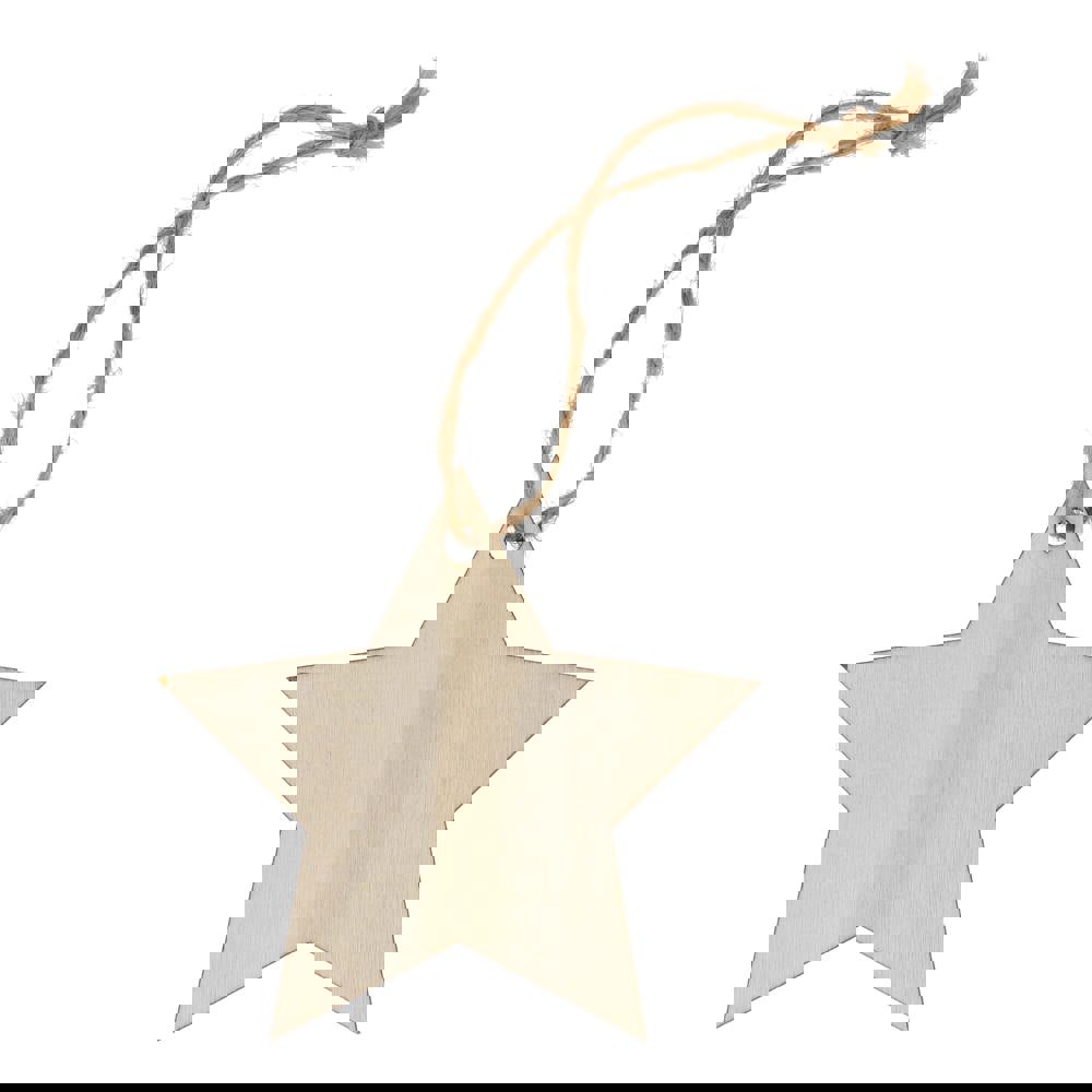 Vier het seizoen met dit charmante houten ornament in de vorm van een ster. Dankzij de klassieke vorm en het ruime bedrukkingsoppervlak is het perfect om een uniek aandenken aan de feestdagen te creëren en cadeau te geven. Ideaal voor het versieren van kerstbomen, kransen of feestelijke displays.
