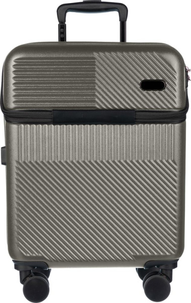 ABS handbagagetrolley (20 inch) met voorvak met ritssluiting voor laptop, 8 wielen en een handvat met drie standen. Voorzien van cijferslot en apart plaatje voor lasergravure. Met USB-poort.