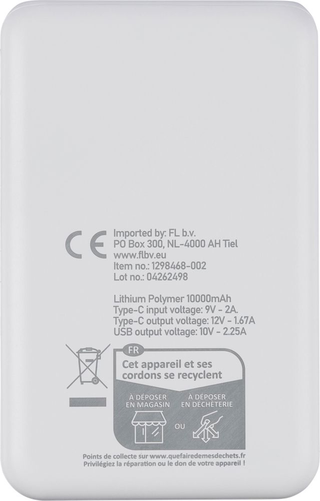 Gerecyclede ABS-powerbank met 20.000 mAh Li-ion batterij en 22,5W snellaadfunctie. Voorzien van Type-C in-/uitgang, Type-A ingang en een LED-indicator voor batterijstatus. Uitgerust met beveiliging tegen oververhitting, kortsluiting, overspanning en overstroom. Inclusief label met gerecyclede ABS-logo op de achterkant. Individueel verpakt in een bruine kartonnen doos met zijdepapier.