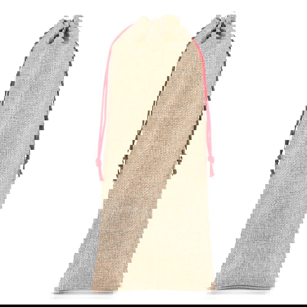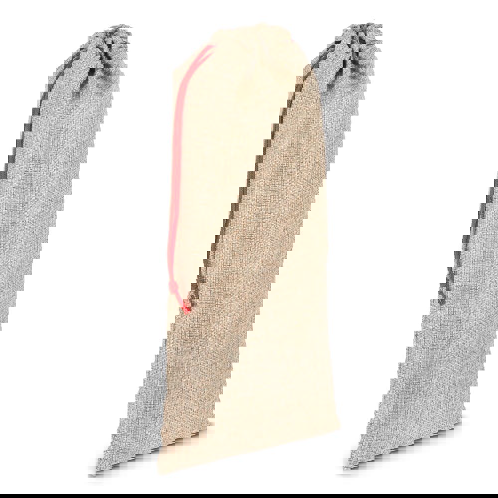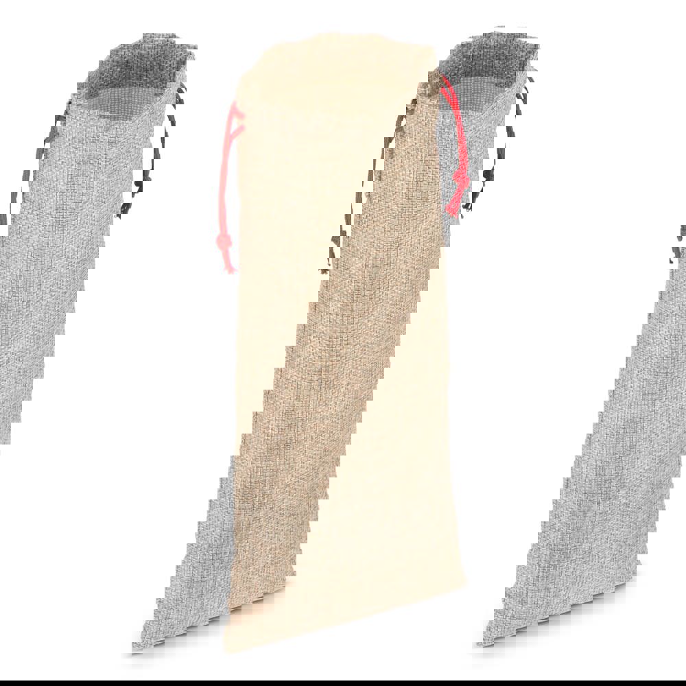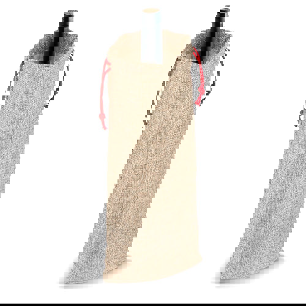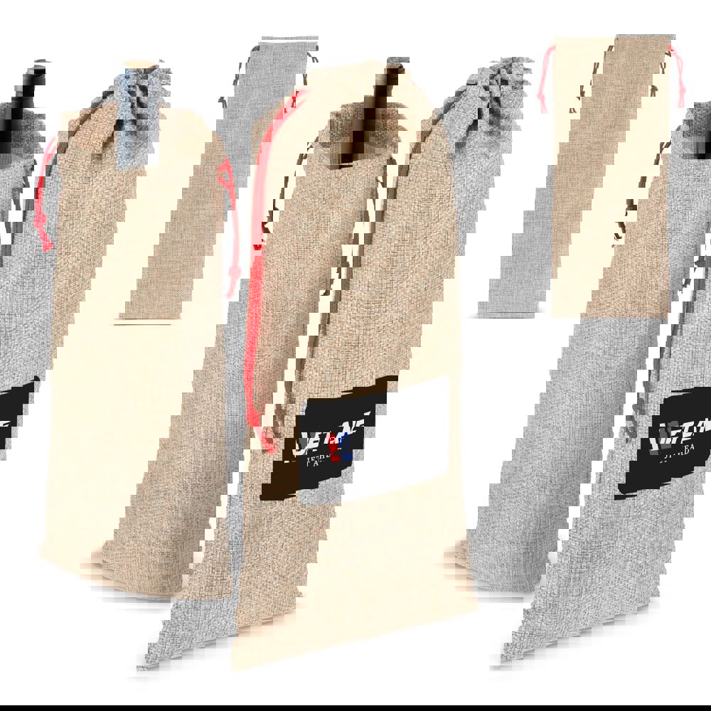 Presenteer je favoriete fles in stijl met dit flessentasje in jute-stijl. Duurzaam en herbruikbaar, de perfecte manier om flessen wijn of likeur te schenken met een vleugje rustieke charme.
