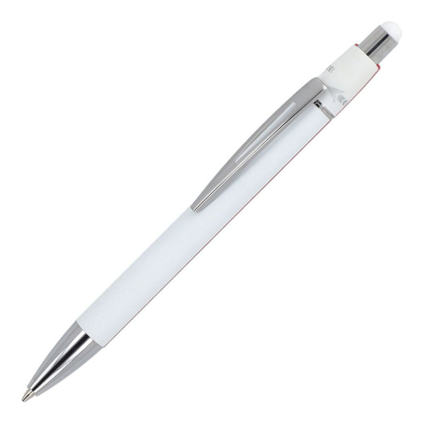 Aluminium spinner balpen met metalen clip en blauw schrijvende jumbo vulling.
