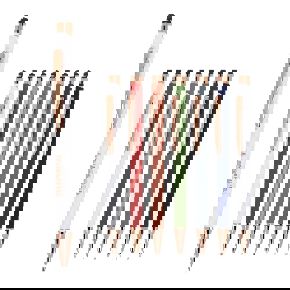 Stijlvolle balpen van gerecycled aluminium met een metalen clip. De rosékleur komt terug in de accenten van de balpen en de lasergraveerkleur. De balpen wordt geleverd met een blauwschrijvende jumbo-vulling.