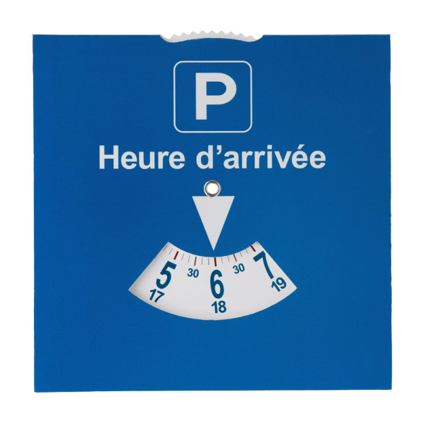 Papieren parkeerschijf die aan de wetgevingen van Frankrijk voldoet. Groot bedrukkingsoppervlak op de achterzijde van de parkeerschijf.