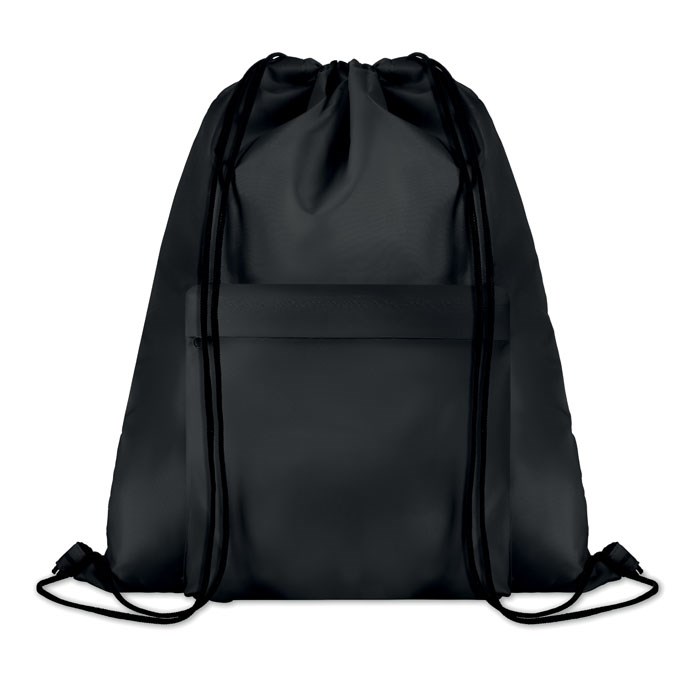 Rugzak met koord van 210D polyester, inclusief voorvak met ritssluiting. Sublimatie bedrukking alleen geschikt op het witte item.