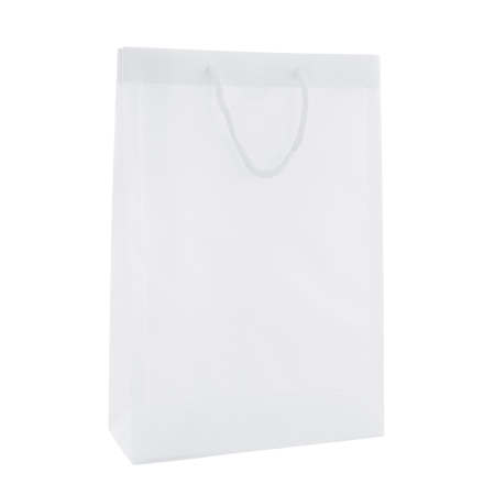 Transparante polypropylene tas recylebaar, 200 x 255 x 80 mm, met koord 5 x 150 mm, en 2 vensters...meer