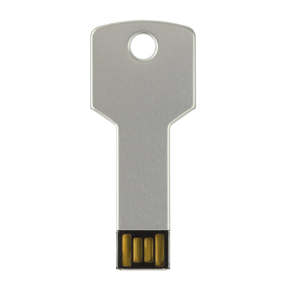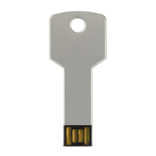 USB flash drive in sleutelvorm. Aluminium materiaal. Standaard in een witte geschenkverpakking geleverd. Prijzen zijn exclusief de wettelijk verplichte €0,40 thuiskopieheffing.